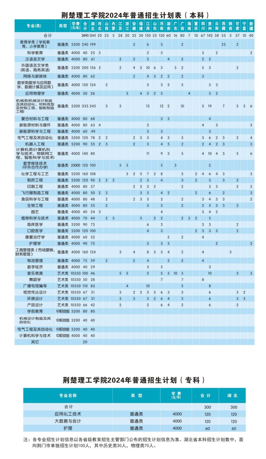2024年普通本专科招生计划表