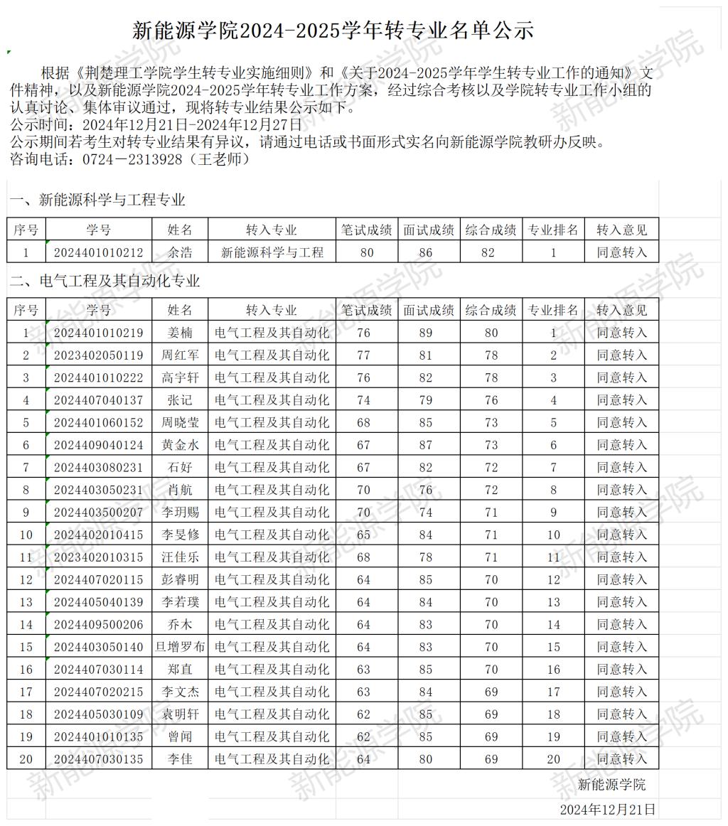 太阳集团官网87222024-2025学年转专业名单公示